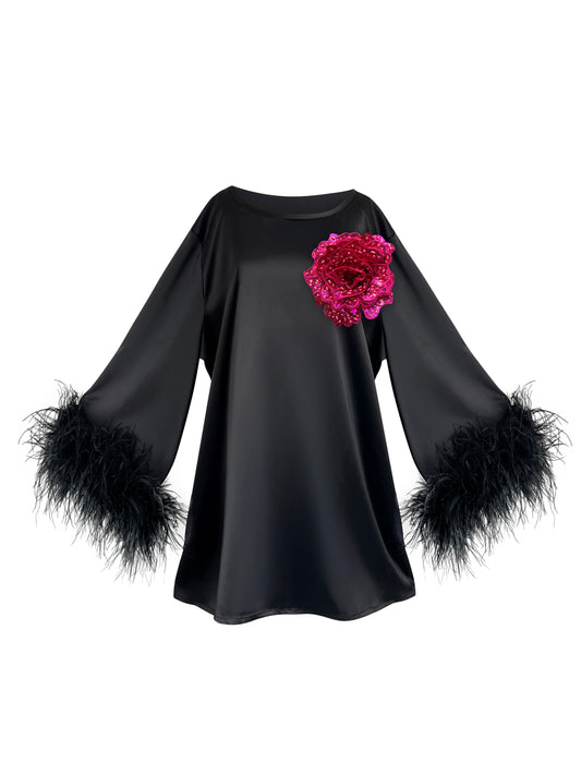 Jess Mini Little Black Party Dress With Fuchsia Sequin Flower