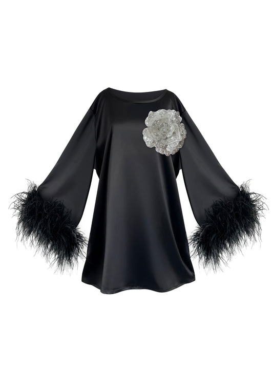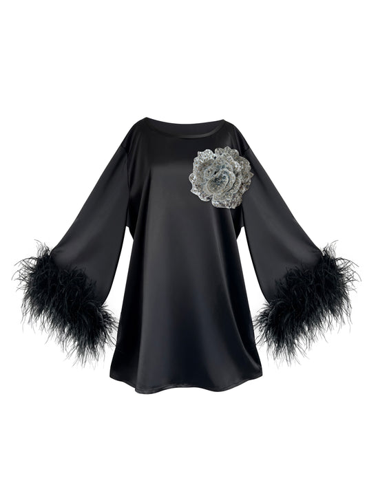 Jess Mini Little Black Party Dress With Black Sequin Flower