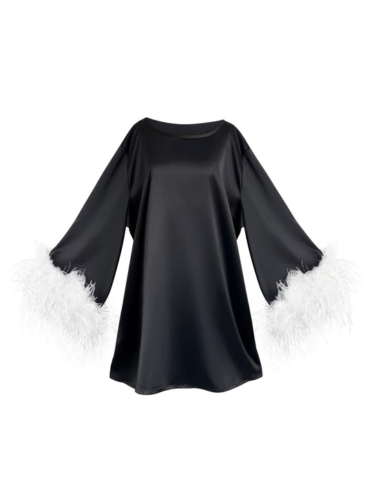 Jess Maxi Maxi Black Party Dress With White Feathers