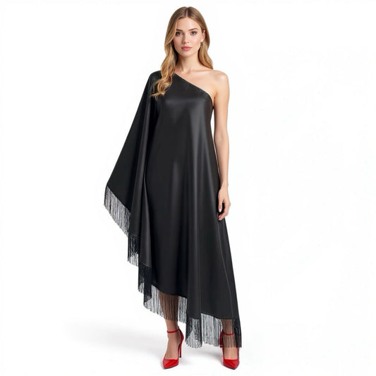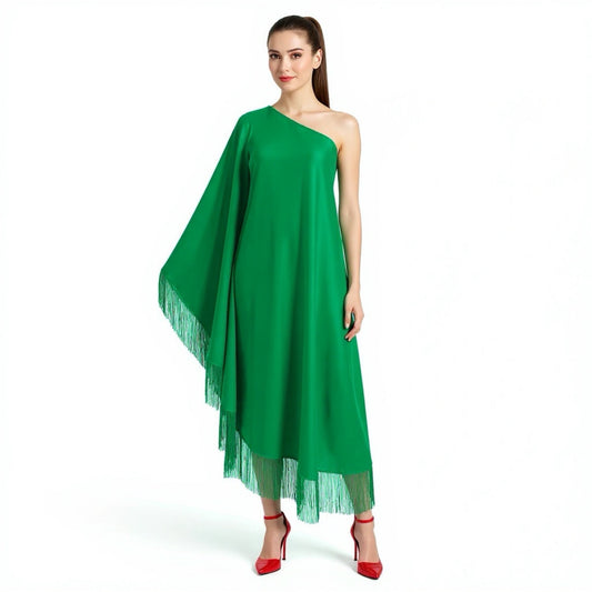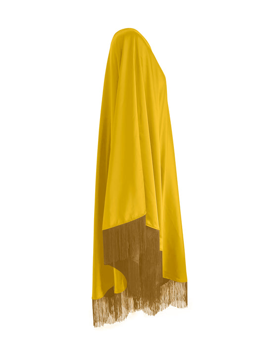 Yellow Fringe Off Shoulder Glam Midi Dress