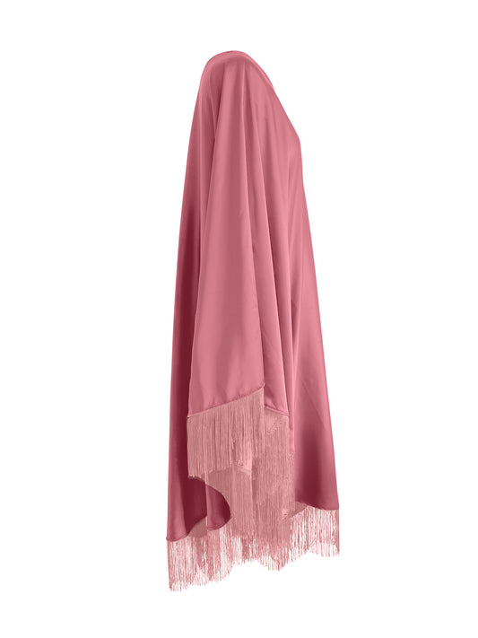 Dusty Pink Fringe Off Shoulder Glam Midi Dress