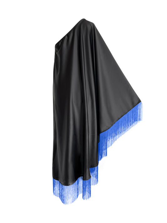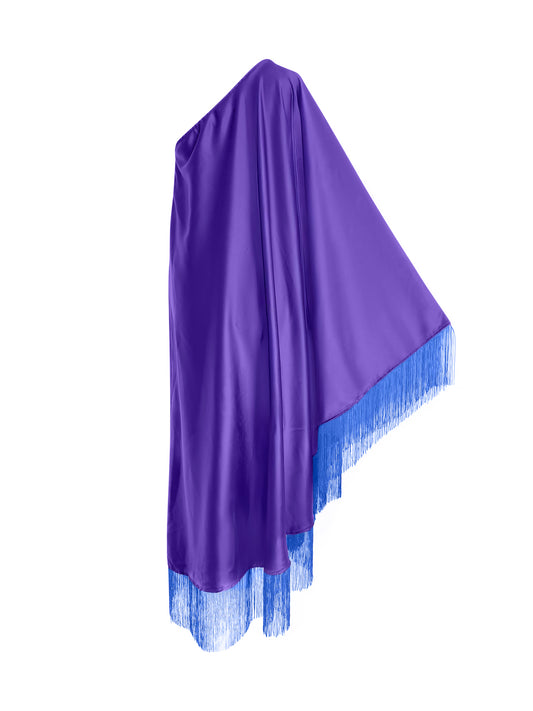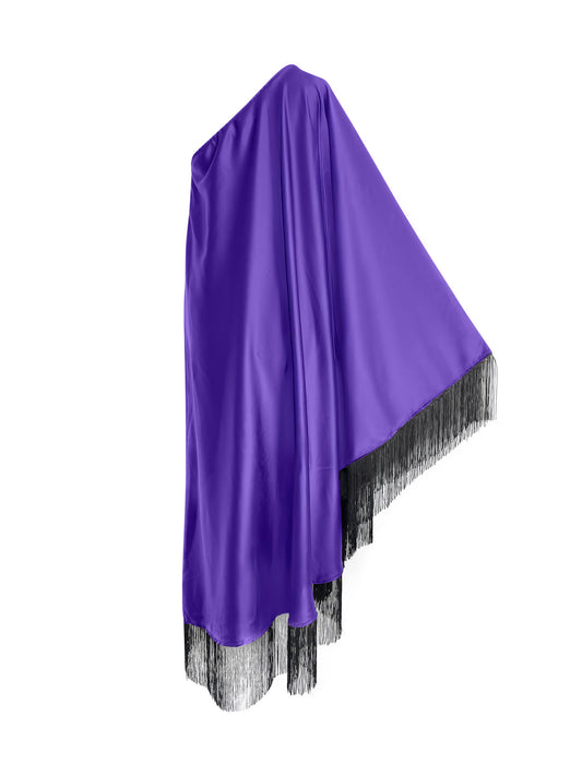 Black Fringe Off Shoulder Purple Glam Midi Dress