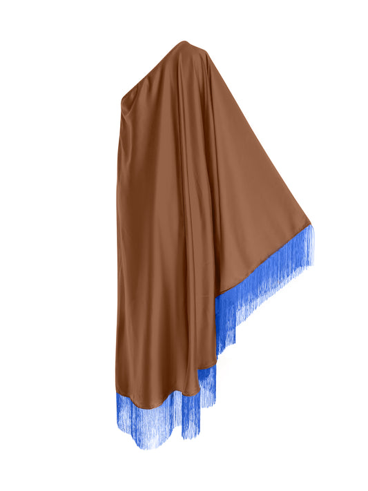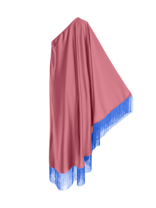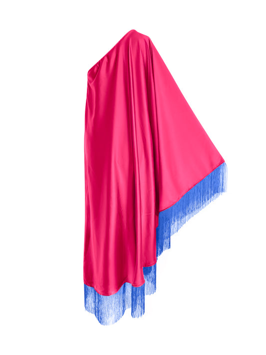 Blue Fringe Off Shoulder Fuchsia Midi Dress