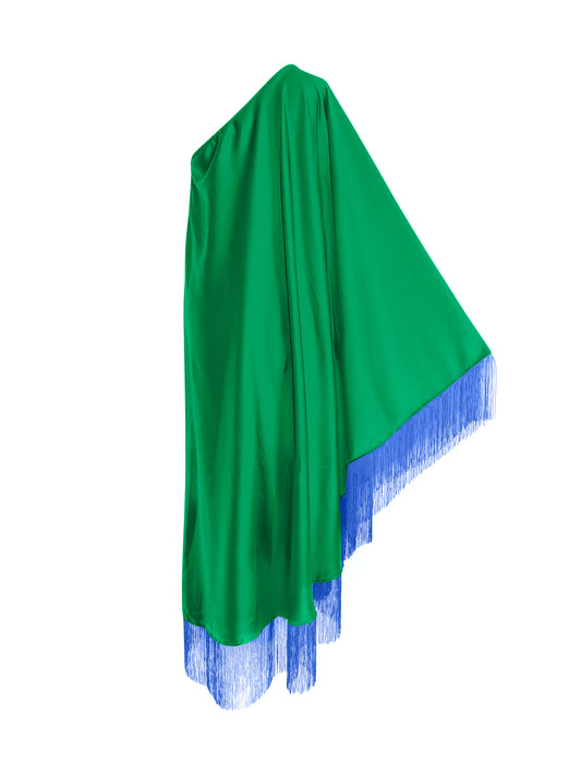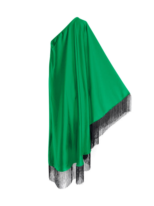 Black Fringe Off Shoulder Green Glam Midi Dress