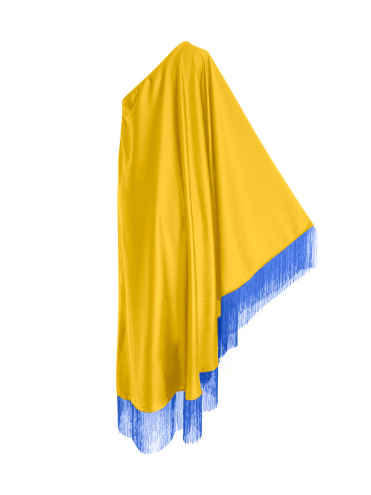 Blue Fringe Off Shoulder Yellow Midi Dress