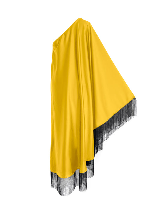 Black Fringe Off Shoulder Yellow Glam Midi Dress