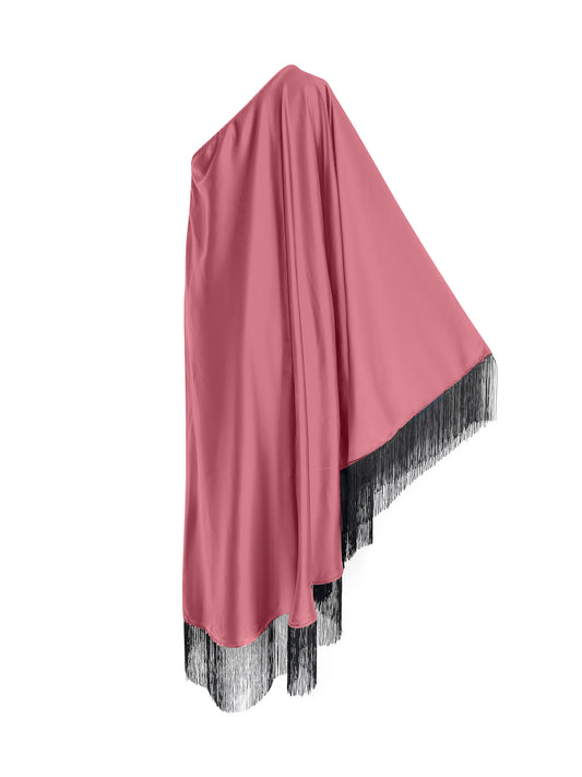 Black Fringe Off Shoulder Powder Pink Glam Midi Dress