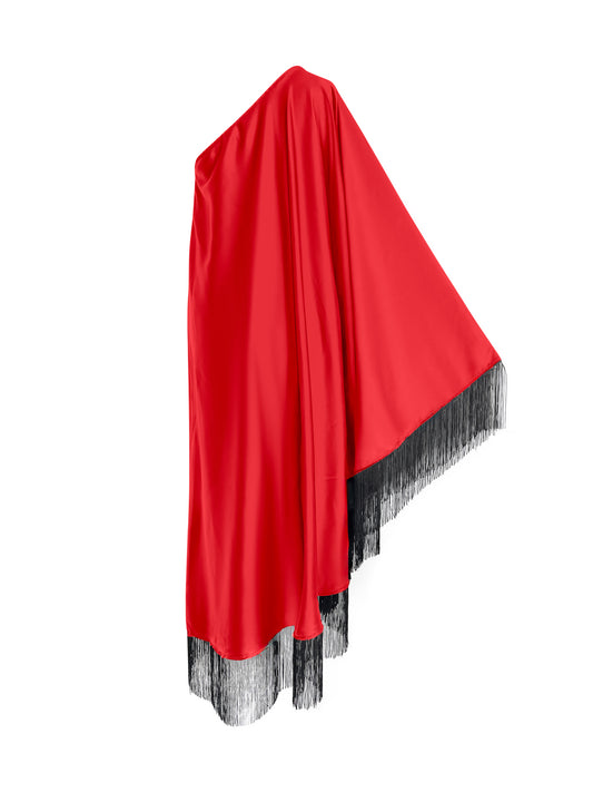 Black Fringe Off Shoulder Red Glam Midi Dress