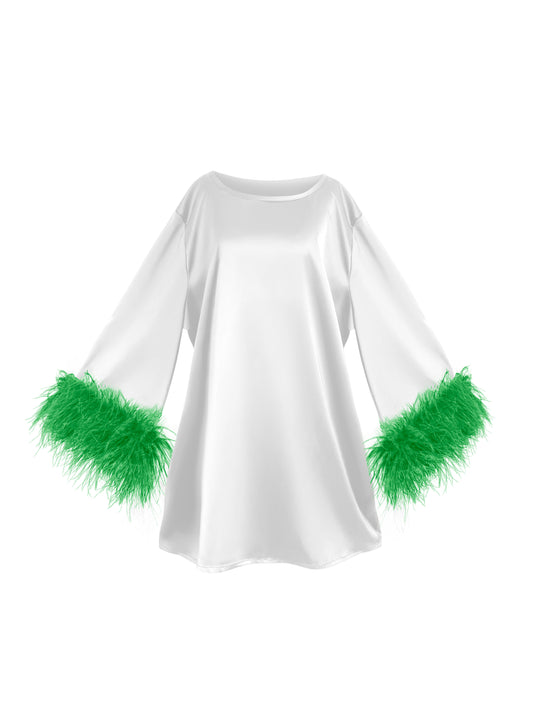 Jess Mini Little Black Party Dress With Green Feathers