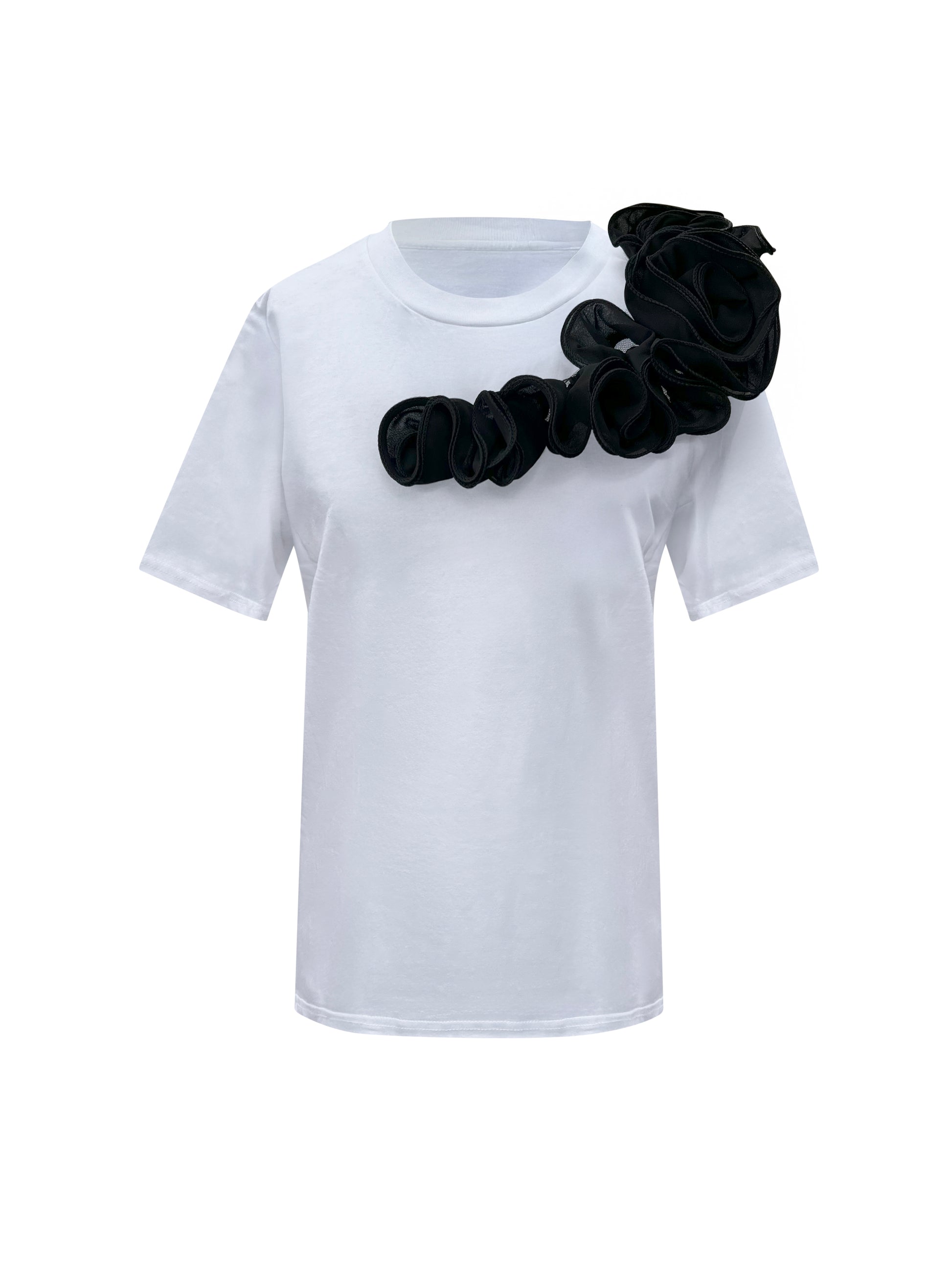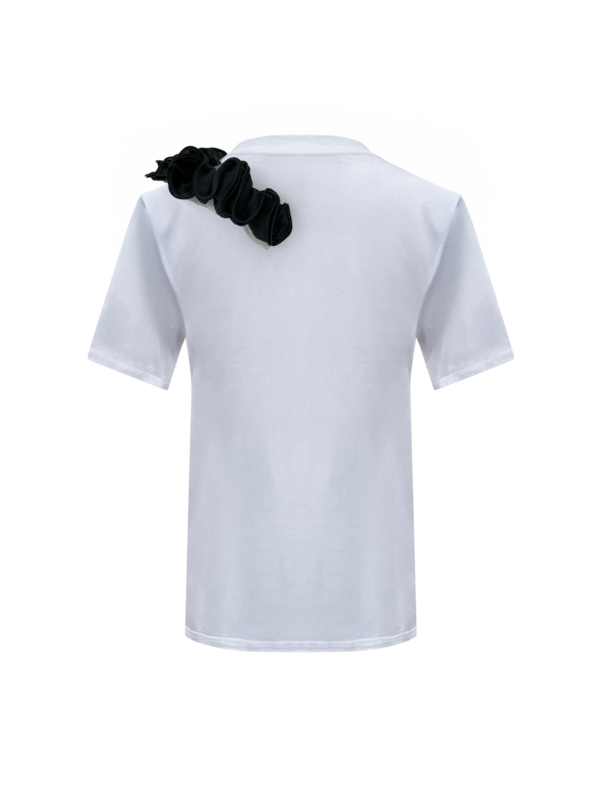 Black Rose Summer One Shoulder Cotton T-Shirt