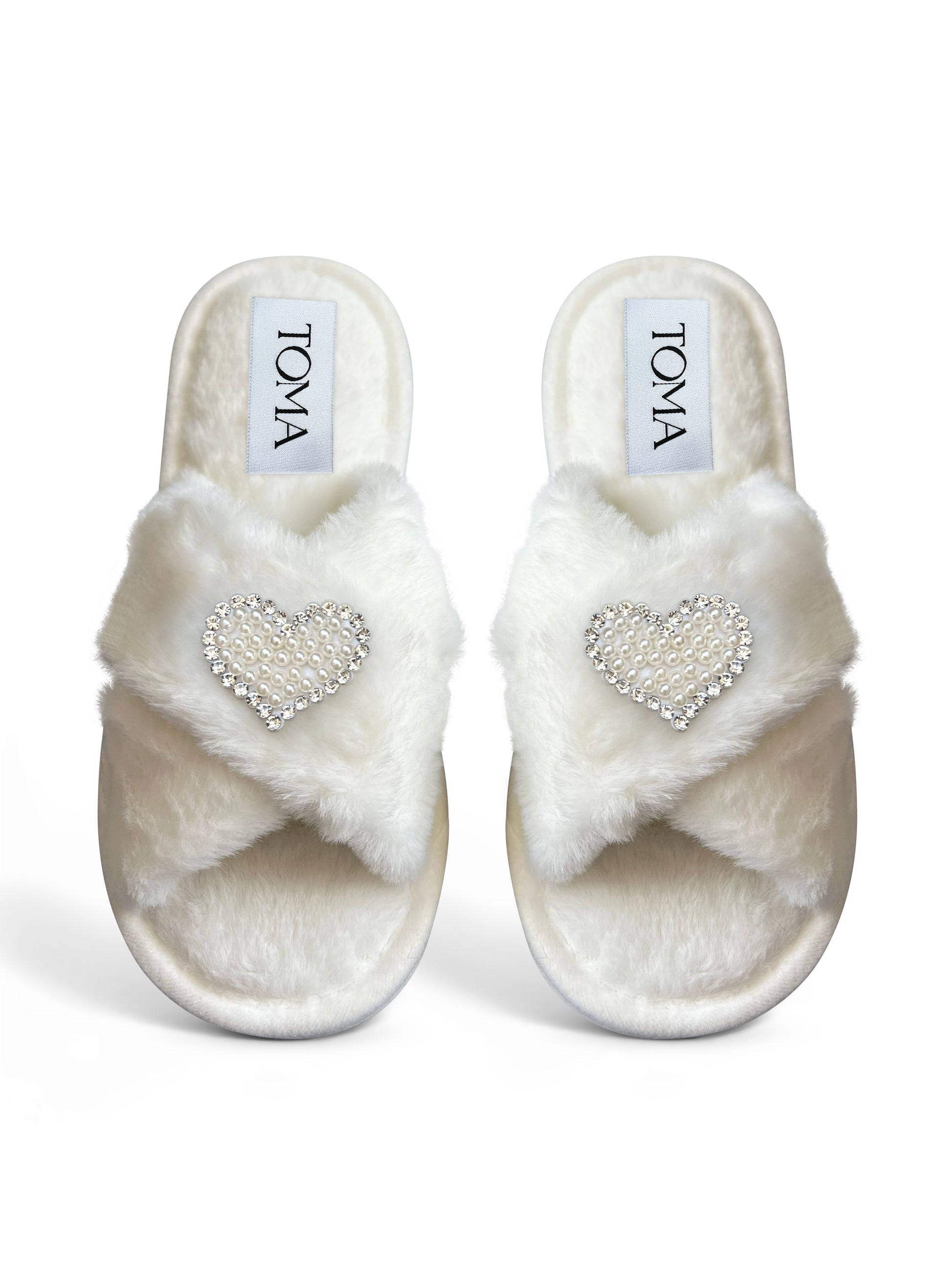 Bridal Faux Fur White Slippers "2 Hearts"