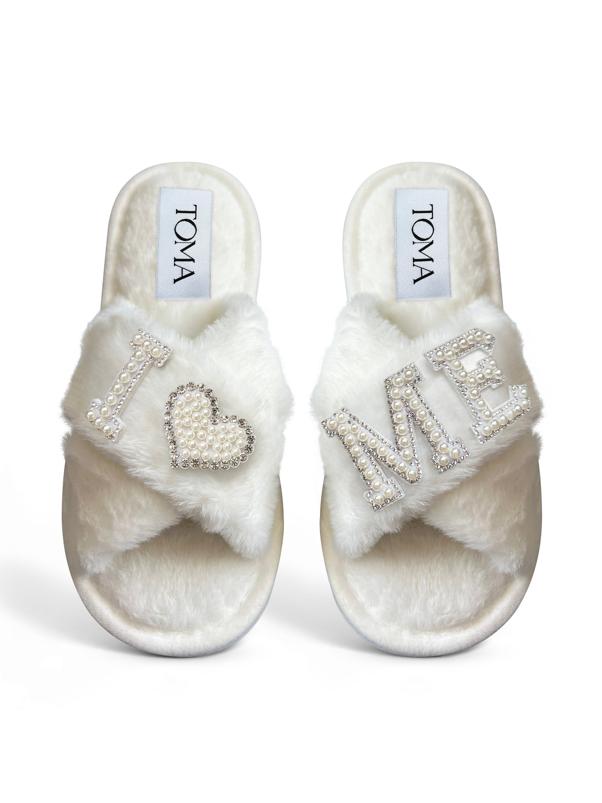Step into elegance with these luxurious open-toe bridal slippers, designed to combine comfort and glamour. Featuring a soft faux fur upper and a non-slip grip sole, they provide cozy support and stability—ideal for brides and wedding party wear.
