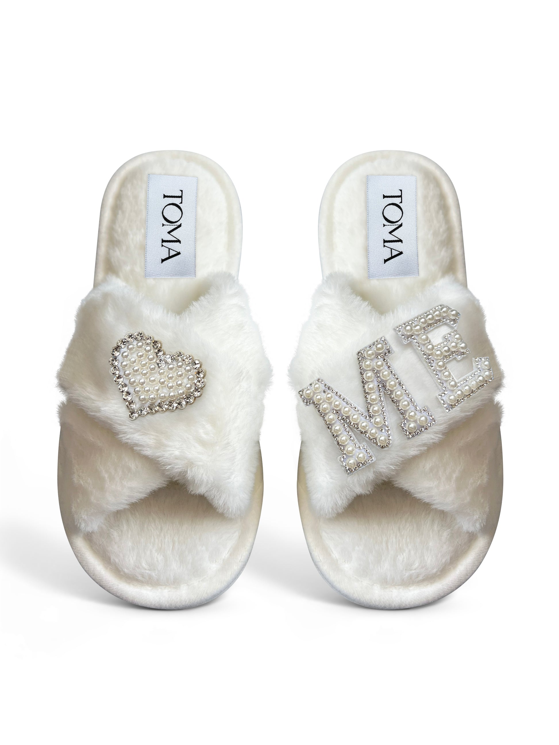 Step into elegance with these luxurious open-toe bridal slippers, designed to combine comfort and glamour. Featuring a soft faux fur upper and a non-slip grip sole, they provide cozy support and stability—ideal for brides and wedding party wear.