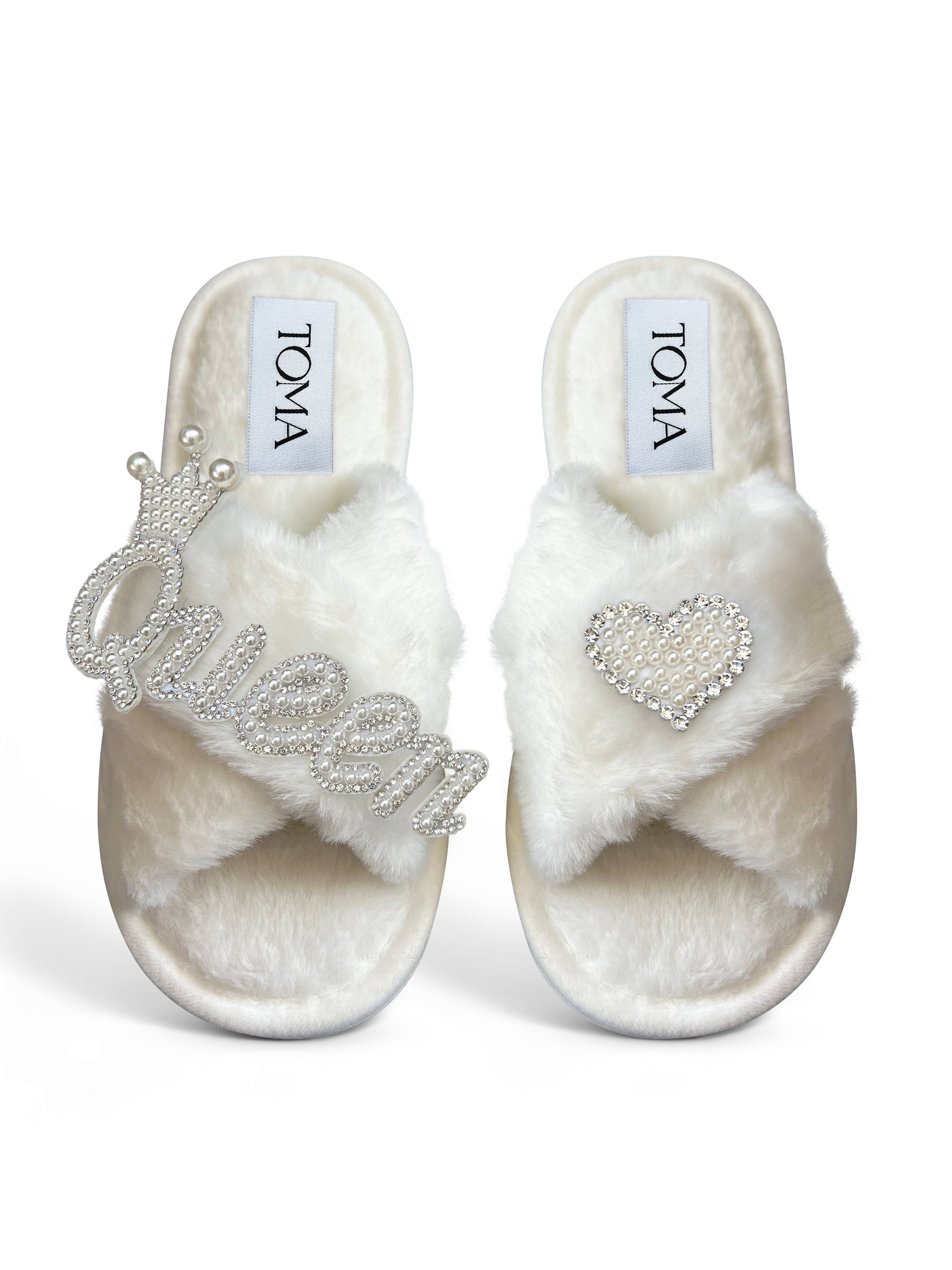 Step into elegance with these luxurious open-toe bridal slippers, designed to combine comfort and glamour. Featuring a soft faux fur upper and a non-slip grip sole, they provide cozy support and stability—ideal for brides and wedding party wear.