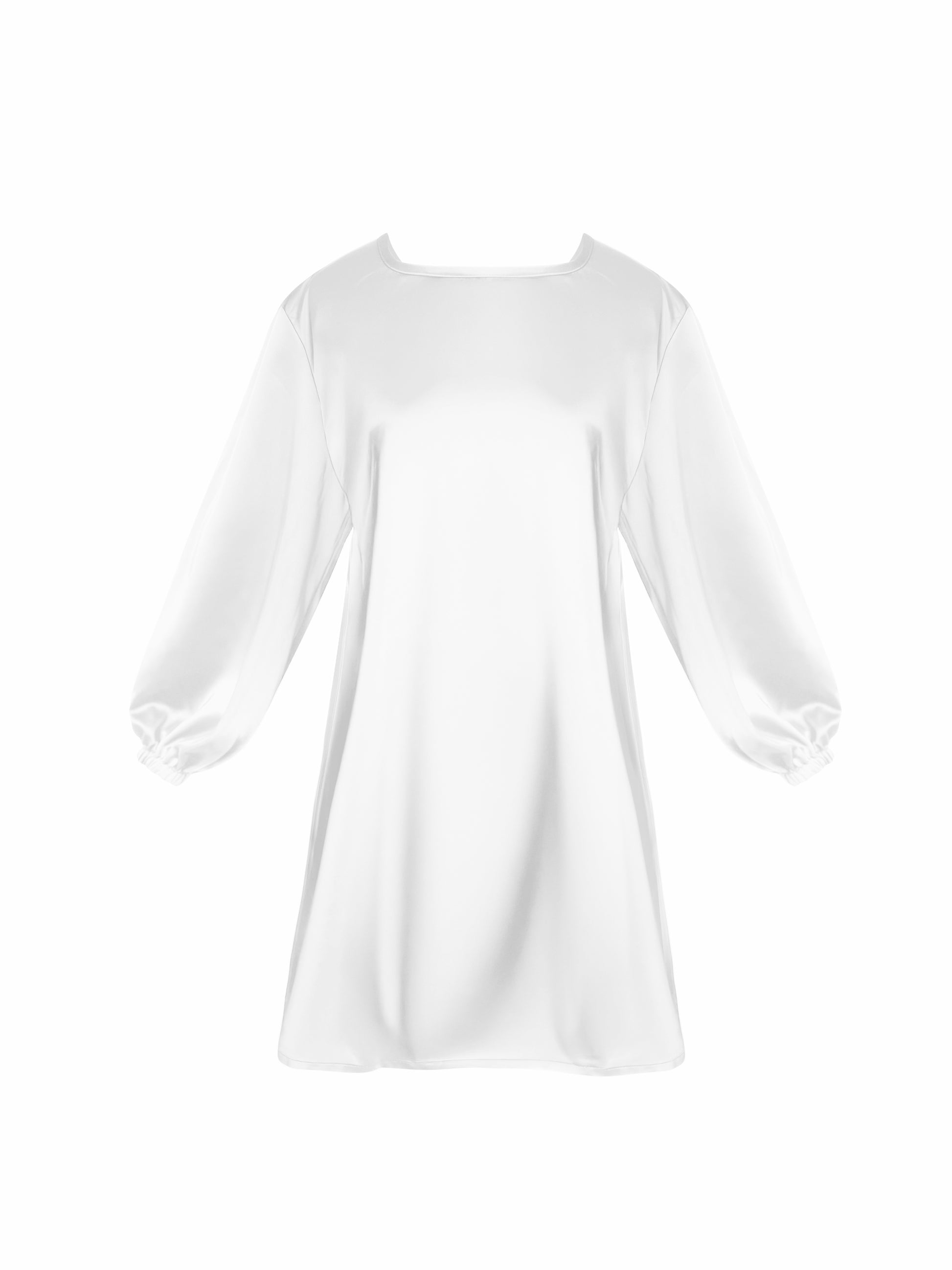 Turn heads from every angle in this timeless white silk satin mini dress. Designed with a sleek, minimalist front and a statement open back, this piece blends elegance with subtle drama. The softly draped silhouette is cinched at the waist with a matching satin belt, creating a flattering, feminine shape.